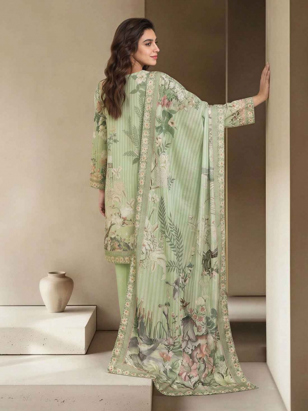 Shirt Embroidered- 2.27m Fabric: Lawn Dupatta Printed- 2.5m Fabric: Silk Bottom Dyed- 1.8m Fabric: Cambric Color: Mint