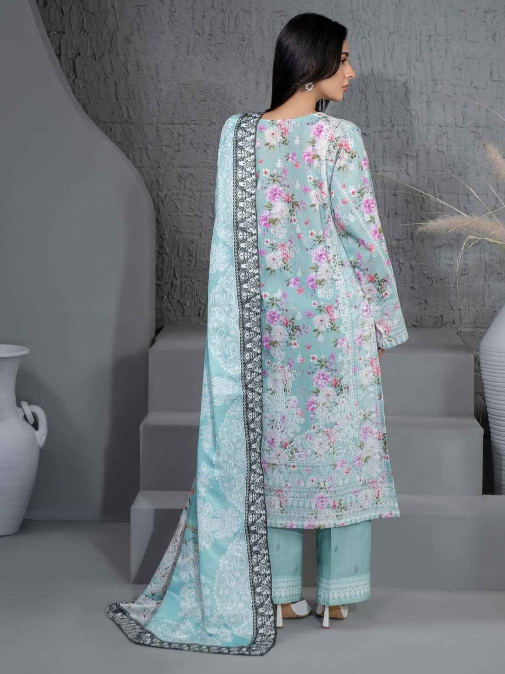 Shirt Printed shirt 1.83 M Fabric: Khaddar Shawl Printed shawl 2.5 M Fabric: Poly Wool Trouser Printed trouser 1.8 M Fabric: Khaddar Color: Green