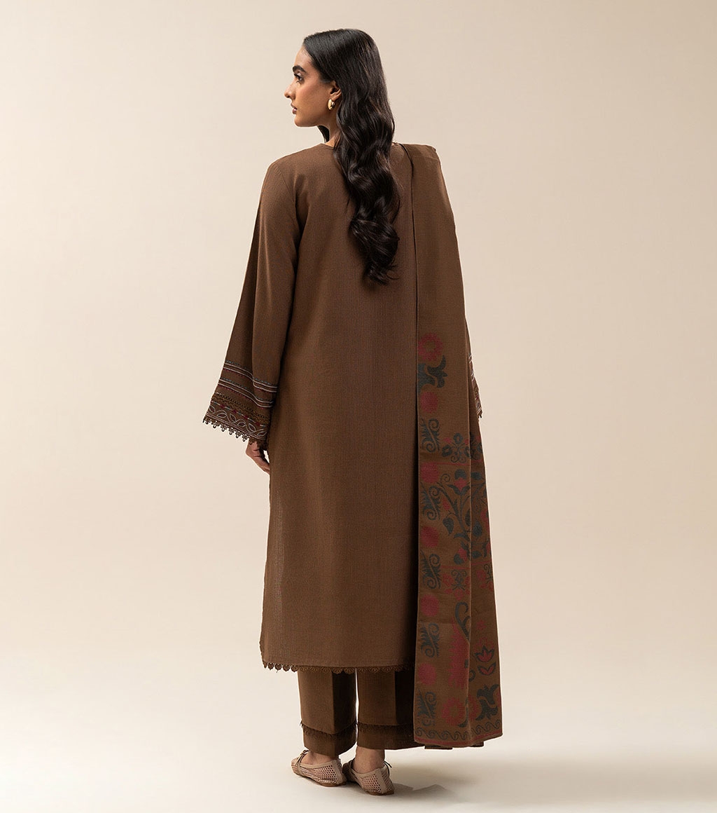 1.2 Mtrs Embroidered Light-Khaddar Front, 0.76 Mtrs Embroidered Sleeves Border, 0.5 Mtrs Light-Khaddar Sleeves, 1.2 Mtrs Light-Khaddar Back, 2.5 Mtrs Jacquarad Shawl, 1.8 Mtrs Dyed Pants