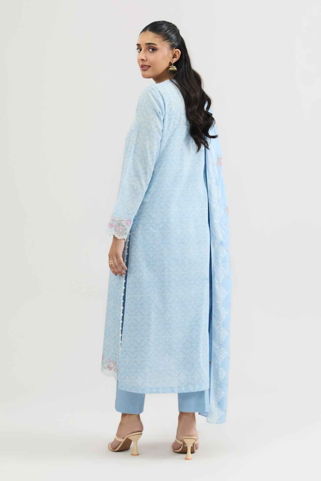 Eid collection 2026 sale 3-Piece Unstitched Shirt Printed Wider Width Lawn Shirt 1.8 M Dyed & Embroidered Organza Neckline 1.5 M Fabric: Lawn Color: Blue Dupatta Printed Lawn Dupatta 2.5 M Fabric: Lawn Color: Blue Trouser Dyed Cambric Trouser 1.7 M Fabric: Cambric Color: Blue