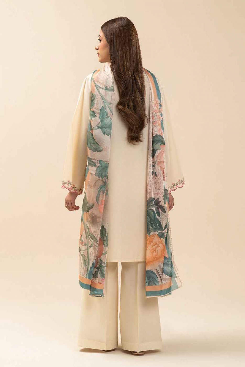 1.2 Mtrs Embroidered Lawn Front, 0.76 Mtrs Embroidered Sleeves Border, 0.5 Mtrs Lawn Sleeves, 1.2 Mtrs Lawn Back, 2.5 Mtrs Printed Silk Dupatta