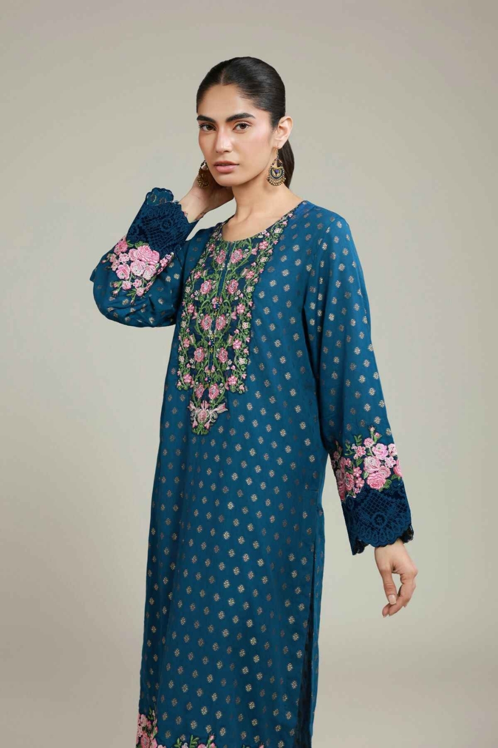 Details Fabrics 2 Piece | Top and Bottom Top Fabric: Dyed Embroidered | Jacquard | 3.25m Bottom Fabric: Dyed | Cambric | 2.5m Material: Jacquard Add Ons: Embroidered Organza Border | 1m -