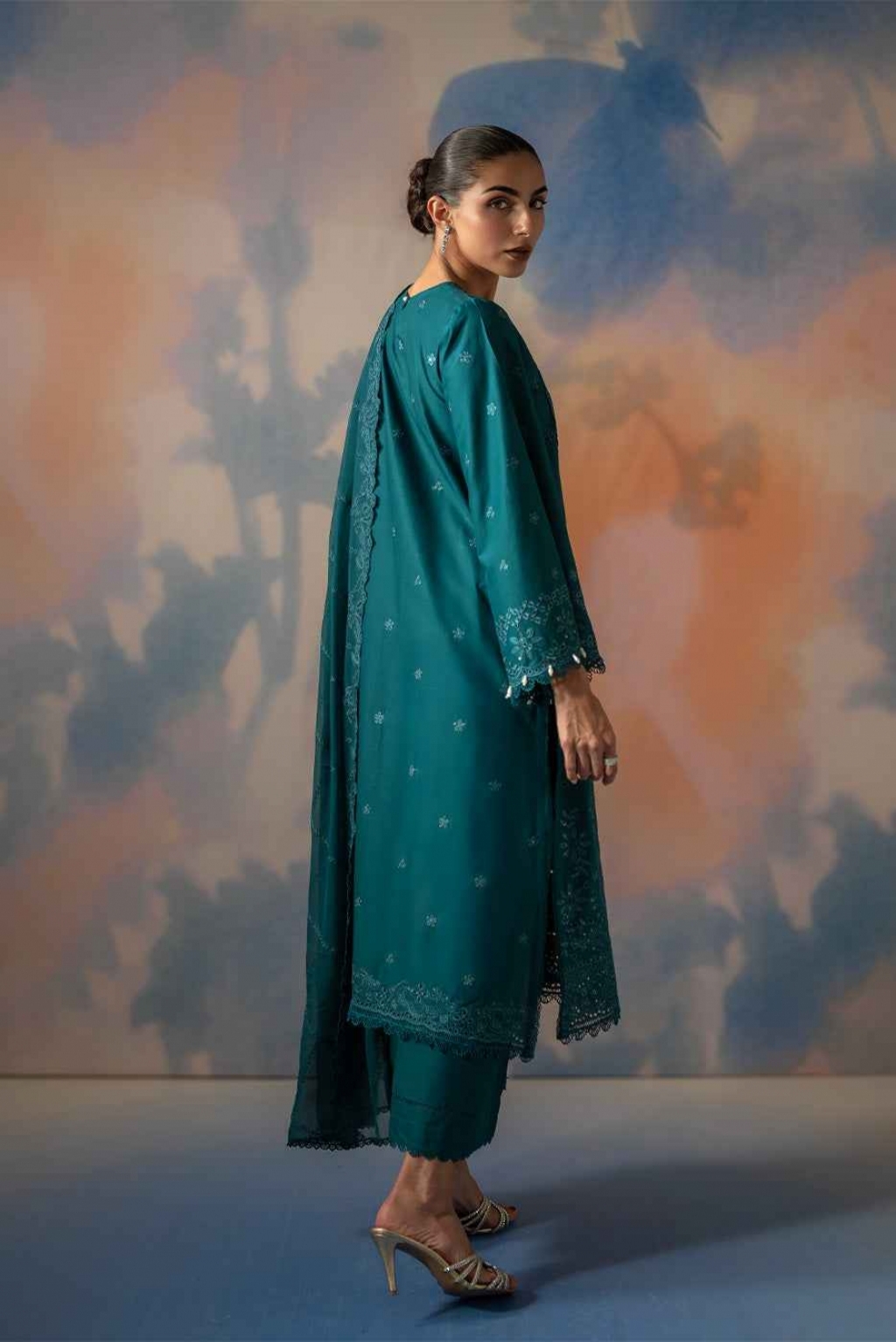 Style Collection: TEAL OPULENCE (UNSTITCHED) 3 PIECE EMBROIDERED CHIKANKARI SUIT WITH BAMBER DUPATTA BY BEECHTREE