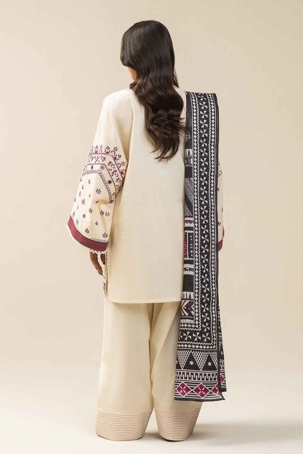 1.2 Mtrs Embroidered Lawn Front, Embroidered Neckline 1 Pc, 0.5 Mtrs Embroidered Lawn Sleeves, 1.2 Mtrs Lawn Back, 2.5 Mtrs Digital Printed Zari Net Dupatta, 1.8 Mtrs Dyed Pants