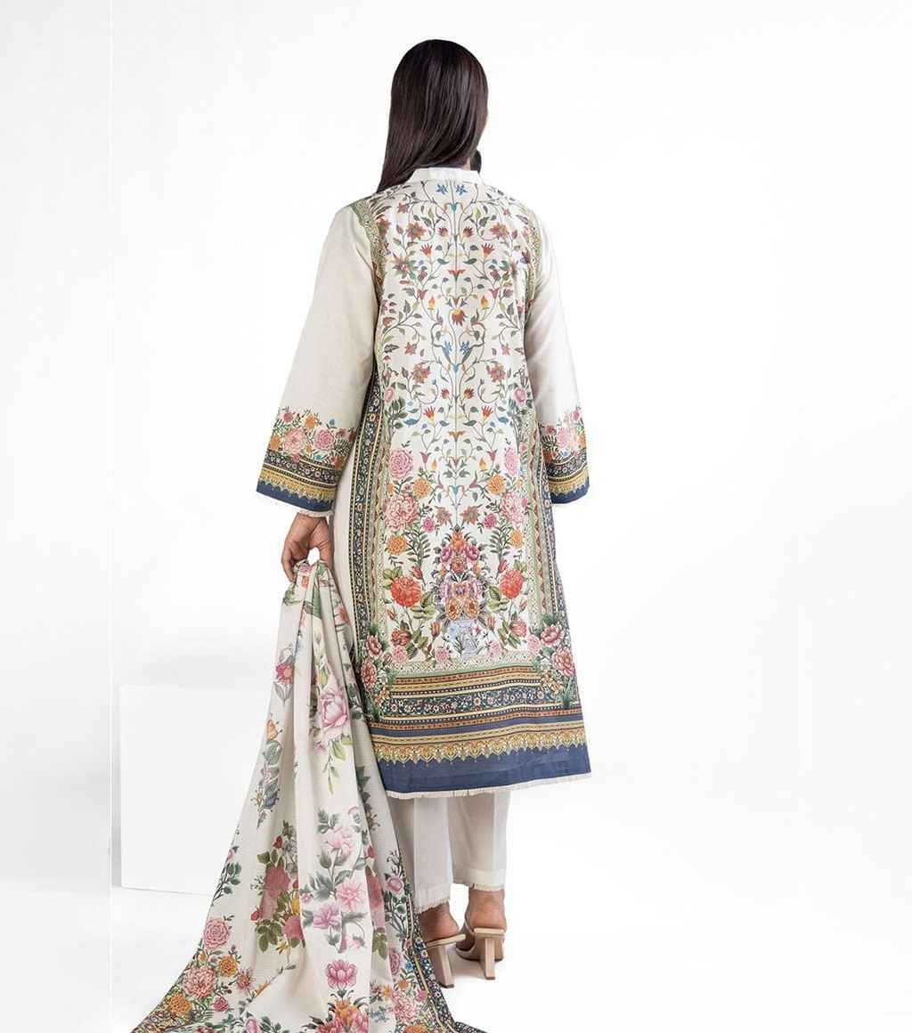 Top Fabric: Printed Slub Lawn | 3m Bottom Fabric: Dyed Cambric | 2.5m Dupatta Fabric: Digital Printed Slub Lawn | 2.5m Material: Slub Lawn