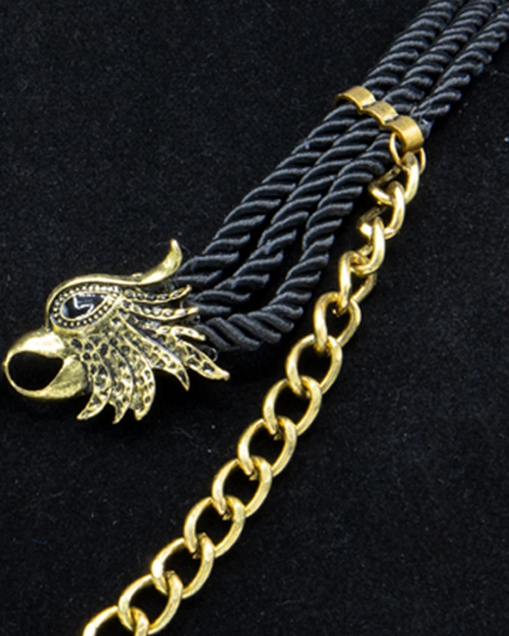 Fashion Multi-Layer Matinee Length Chain & rope Long Necklace. Multi-layers of different style golden-toned chains. Long matinee length.