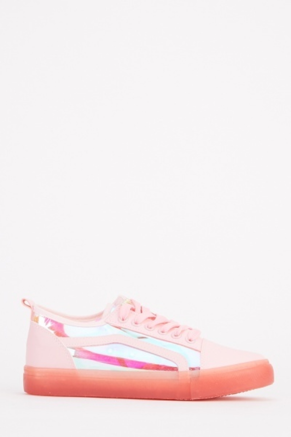 - Platform: 3cm - Upper: Other Material - Lining and Sock: Textile - Outer Sole: Other Material - Lace Up Fastening - Standard Size - Standard Fit A pair of round-toe transparent and off-white sneakers, has regular styling, lace-up detail Synthetic upper Cushioned footbed Textured and patterned outsole Return Policy; We Offer 15 days return policy to our customers. If shoes was unused.
